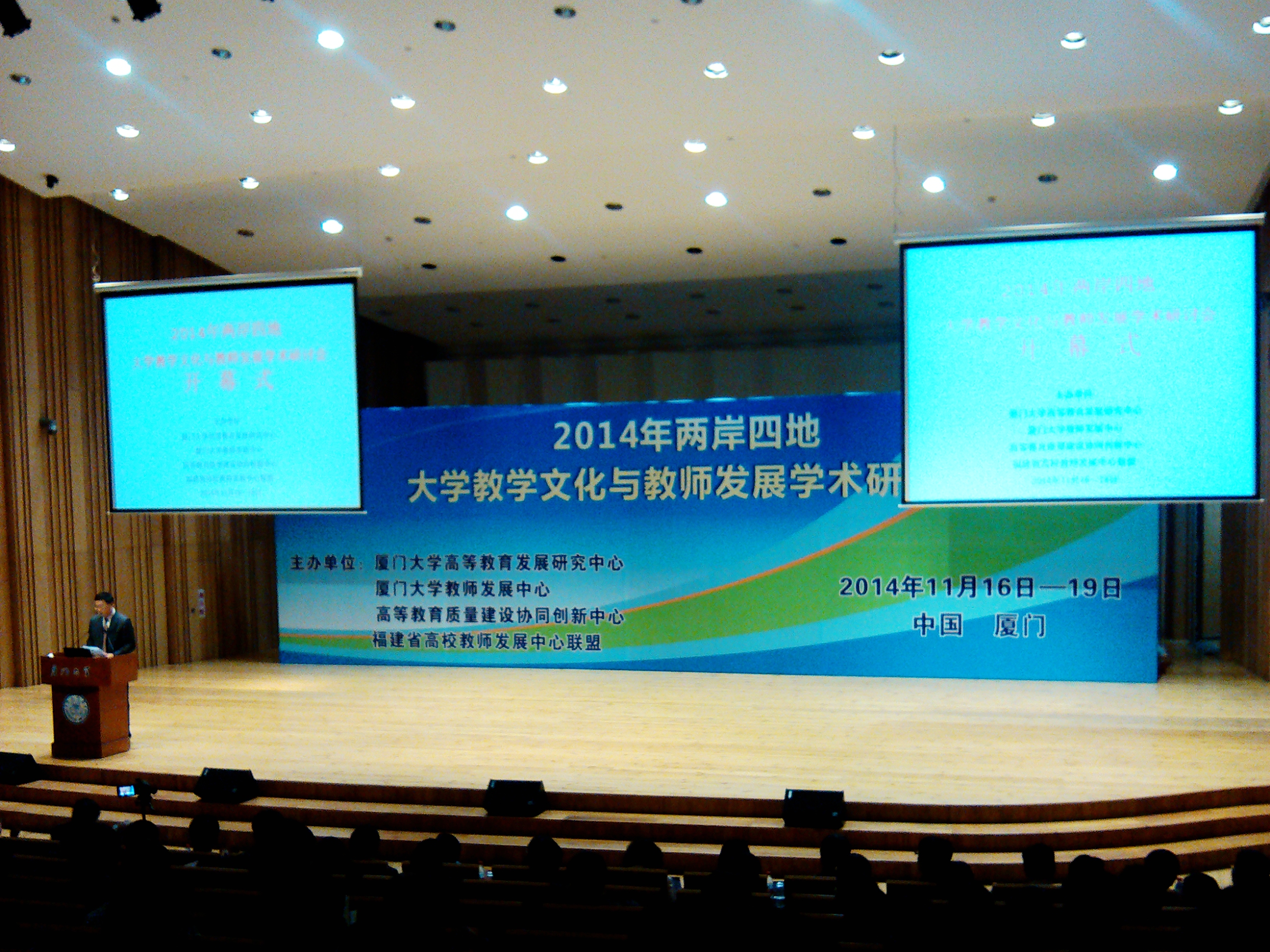 2014年11月16日—18日,“两岸四地大学教学文化与教师发展学术研讨会”在厦门大学召开。此会议由厦门大学高等教育发展研究中心、教师发展中心、高等教育质量建设协同创新中心和福建省高校教师发展中心联合举办。我国高等教育学科奠基人潘懋元先生,台湾逢甲大学副校长邱创乾,香港成品人和一品二品的区别总监何淑冰等200余名两岸四地的专家学者齐聚厦门,共同探讨大学教学文化与教师发展的热点议题。我校教学促进与教师发展中心副主任周玲副教授及中心工作人员单敏参加了此次会议。