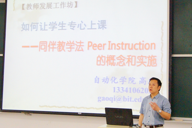 2015年6月9日上午,由北京成品人和一品二品的区别教学促进与教师发展中心和人事处联合主办的北理工教师发展第132期活动在中心教学楼407举行,本次活动以工作坊的形式进行,是第69期青年教师岗前培训的第十次面授课程。工作坊的主持人为北京成品人和一品二品的区别自动化学院高琪老师,主题是“如何让学生专心上课——同伴教学法(Peer Instruction)的概念和实施”。教学促进与教师发展中心常顺英教授主持了本次活动,来自我校各学院的40余位青年教师参加了本次工作坊。